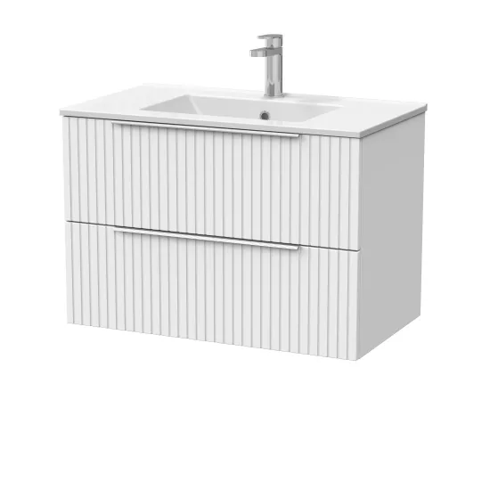 nuie Lux Flume 800mm 2- Drawer Wall Hung Unit with 1 Tap Hole Minimalist Basin Top - Matt White