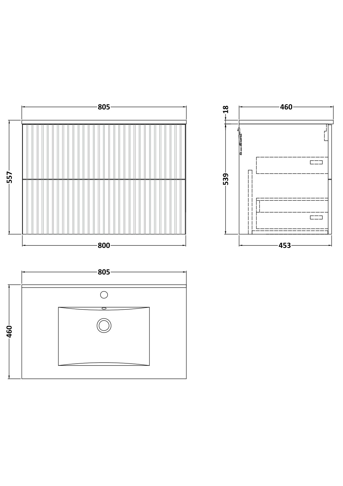 Flume 800mm 2- Drawer Wall Hung Unit with 1 Tap Hole Minimalist Basin Top