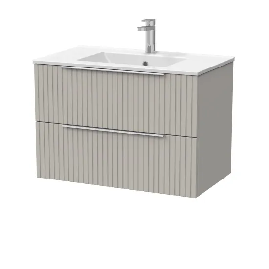 nuie Lux Flume 800mm 2- Drawer Wall Hung Unit with 1 Tap Hole Minimalist Basin Top - Pebble Grey