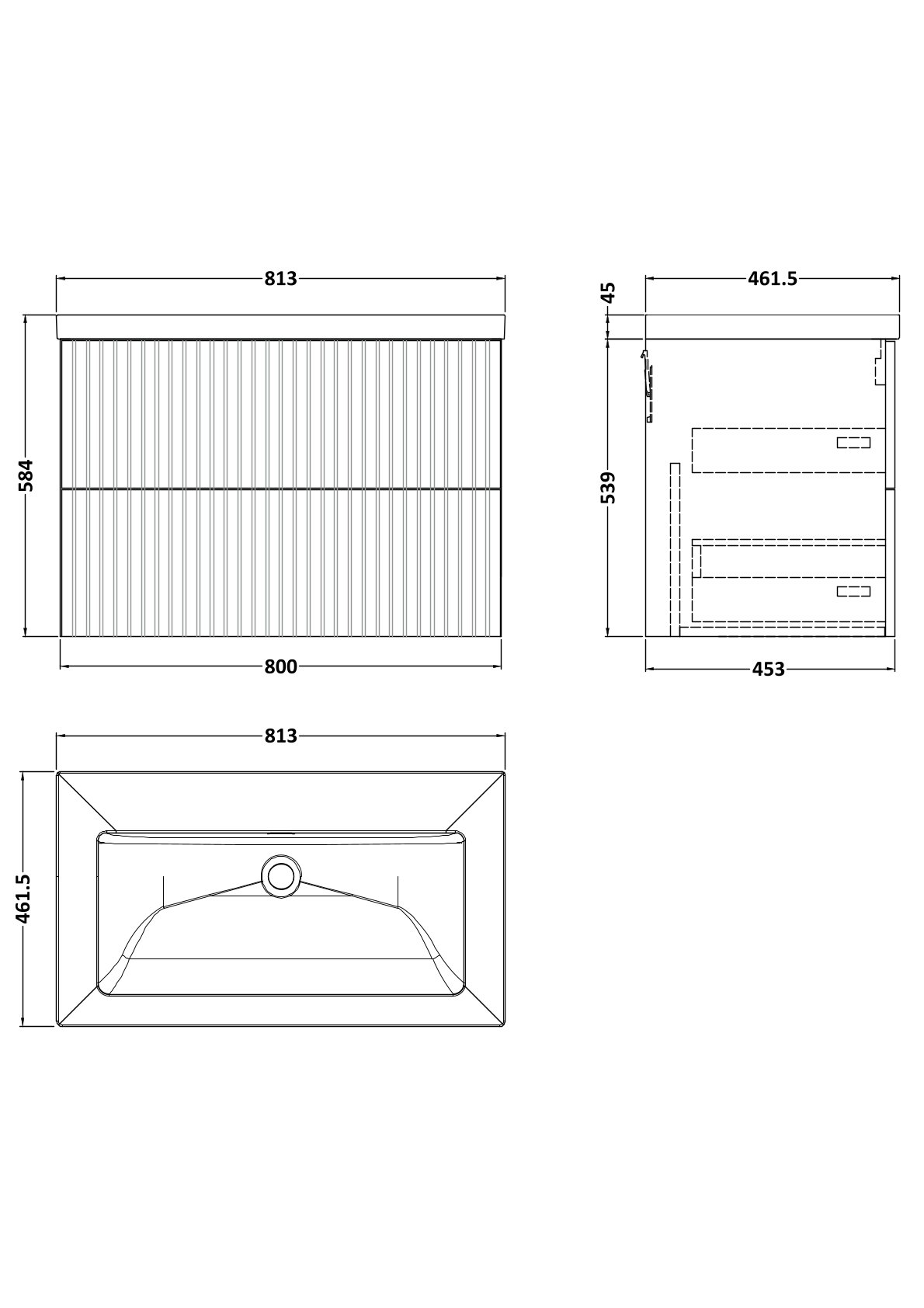Flume 800mm 2- Drawer Wall Hung Unit with Contemporary Fireclay Basin - 0 Tap Holes