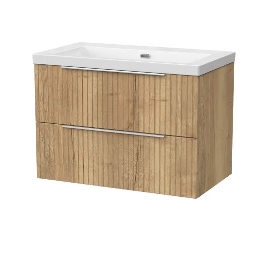 nuie Lux Flume 800mm 2- Drawer Wall Hung Unit with Contemporary Fireclay Basin - 0 Tap Holes - Autumn Oak