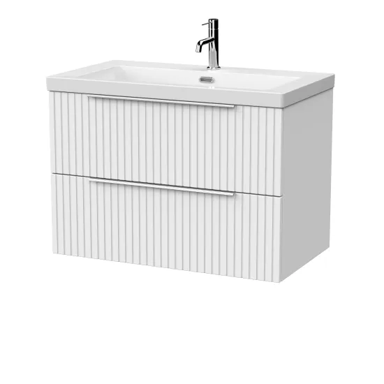 Flume 800mm 2- Drawer Wall Hung Unit with Contemporary Fireclay Basin - 1 Tap Hole