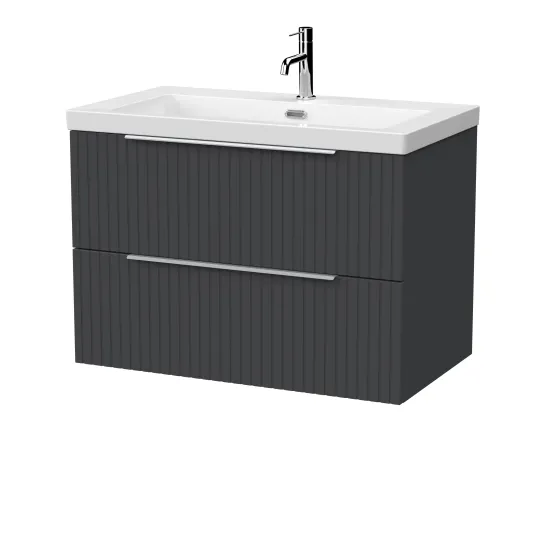 Flume 800mm 2- Drawer Wall Hung Unit with Contemporary Fireclay Basin - 1 Tap Hole