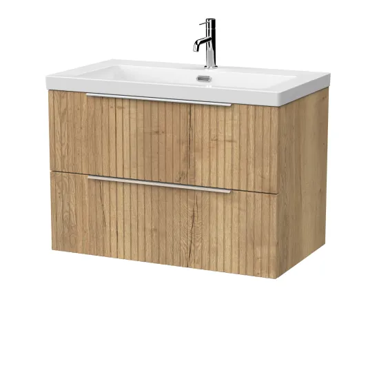 nuie Lux Flume 800mm 2- Drawer Wall Hung Unit with Contemporary Fireclay Basin - 1 Tap Hole - Autumn Oak