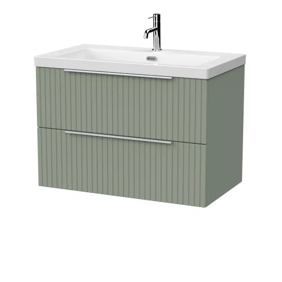 nuie Lux Flume 800mm 2- Drawer Wall Hung Unit with Contemporary Fireclay Basin - 1 Tap Hole - Fern Green