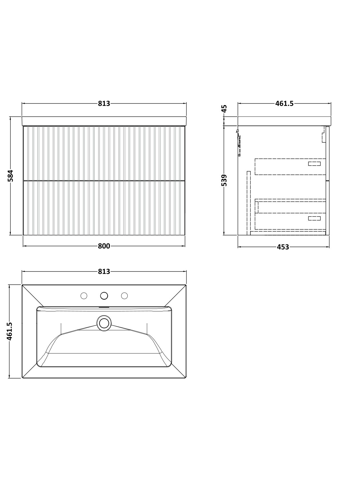 Flume 800mm 2- Drawer Wall Hung Unit with Contemporary Fireclay Basin - 3 Tap Holes