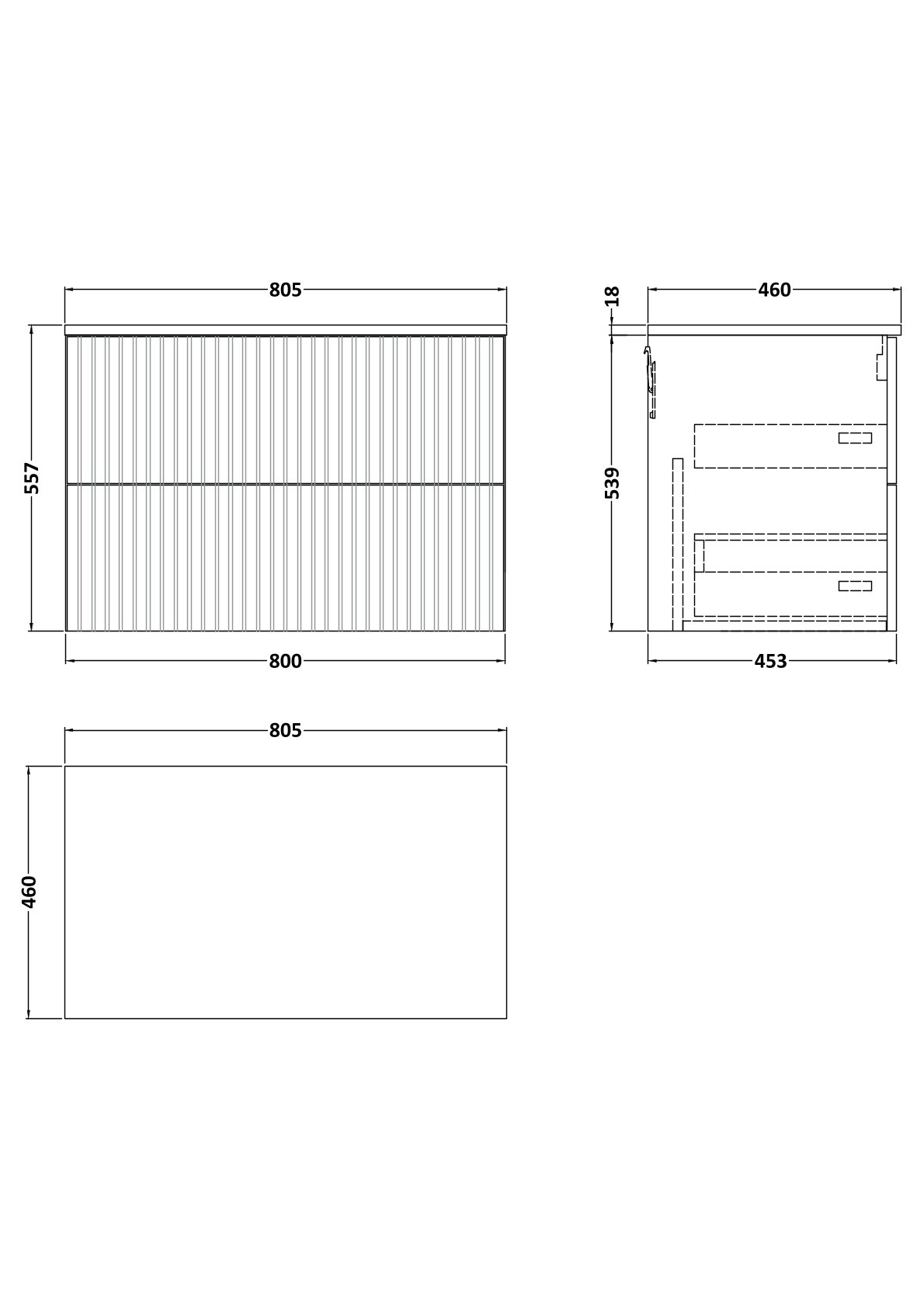 Flume 800mm 2- Drawer Wall Hung Unit with Furniture Worktop