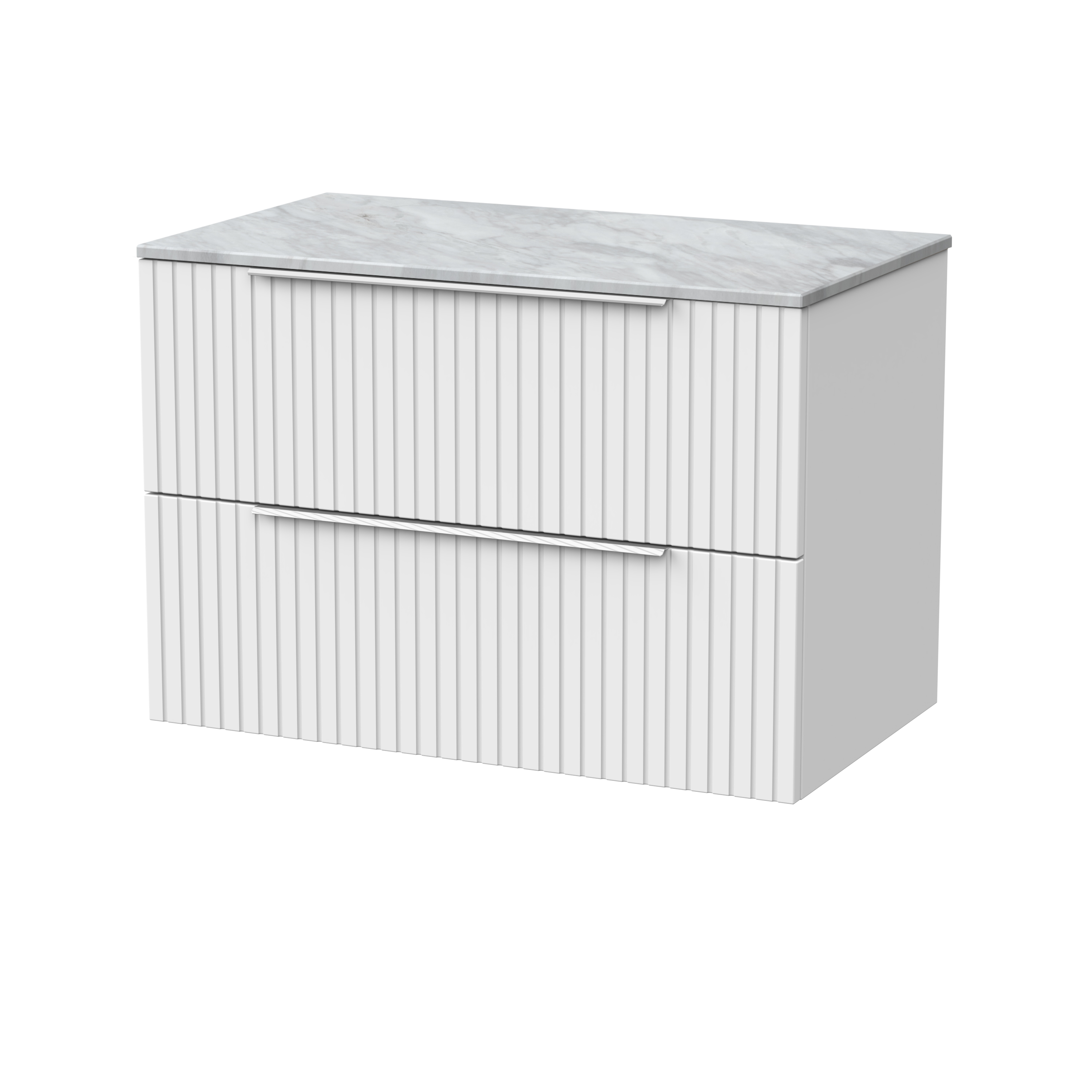 nuie Lux Flume 800mm 2- Drawer Wall Hung Unit with Grey Marble Top - Matt White