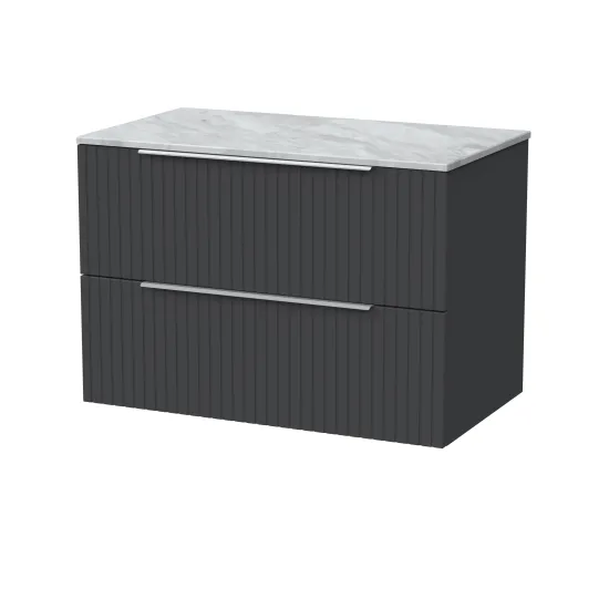 Flume 800mm 2- Drawer Wall Hung Unit with Grey Marble Top