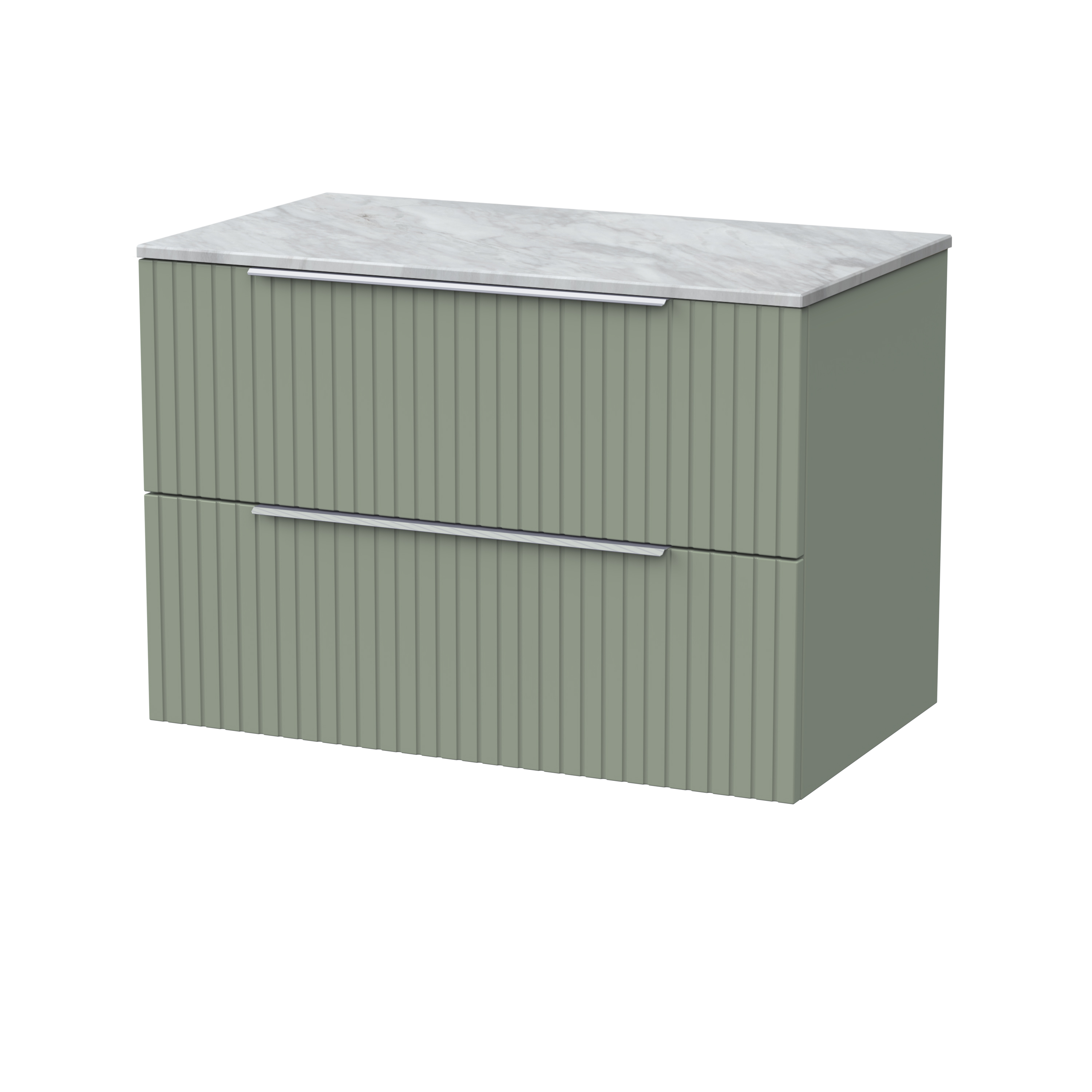 nuie Lux Flume 800mm 2- Drawer Wall Hung Unit with Grey Marble Top - Fern Green