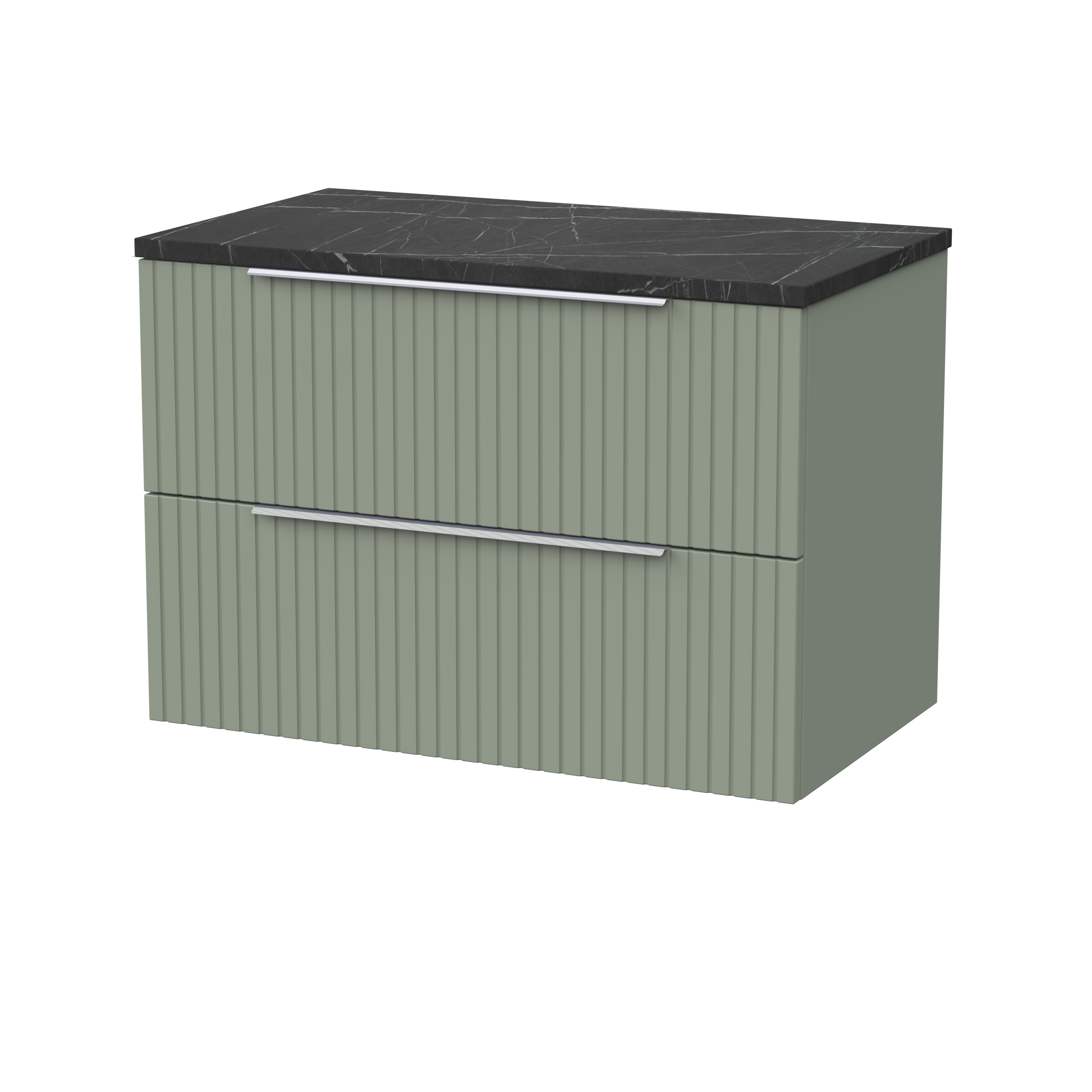 nuie Lux Flume 800mm 2- Drawer Wall Hung Unit with Laminate Worktop - Fern Green