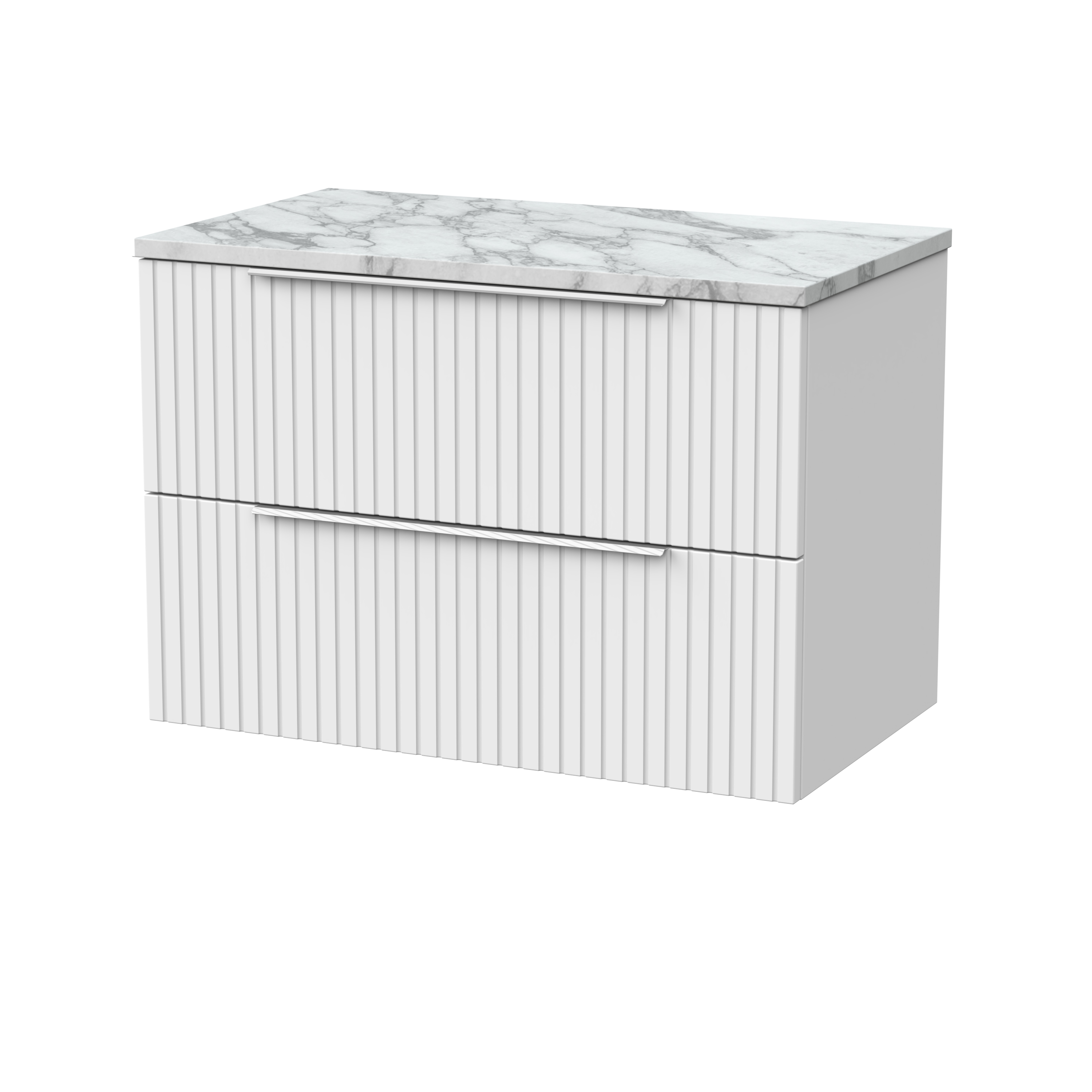 nuie Lux Flume 800mm 2- Drawer Wall Hung Unit with Laminate Worktop - Matt White