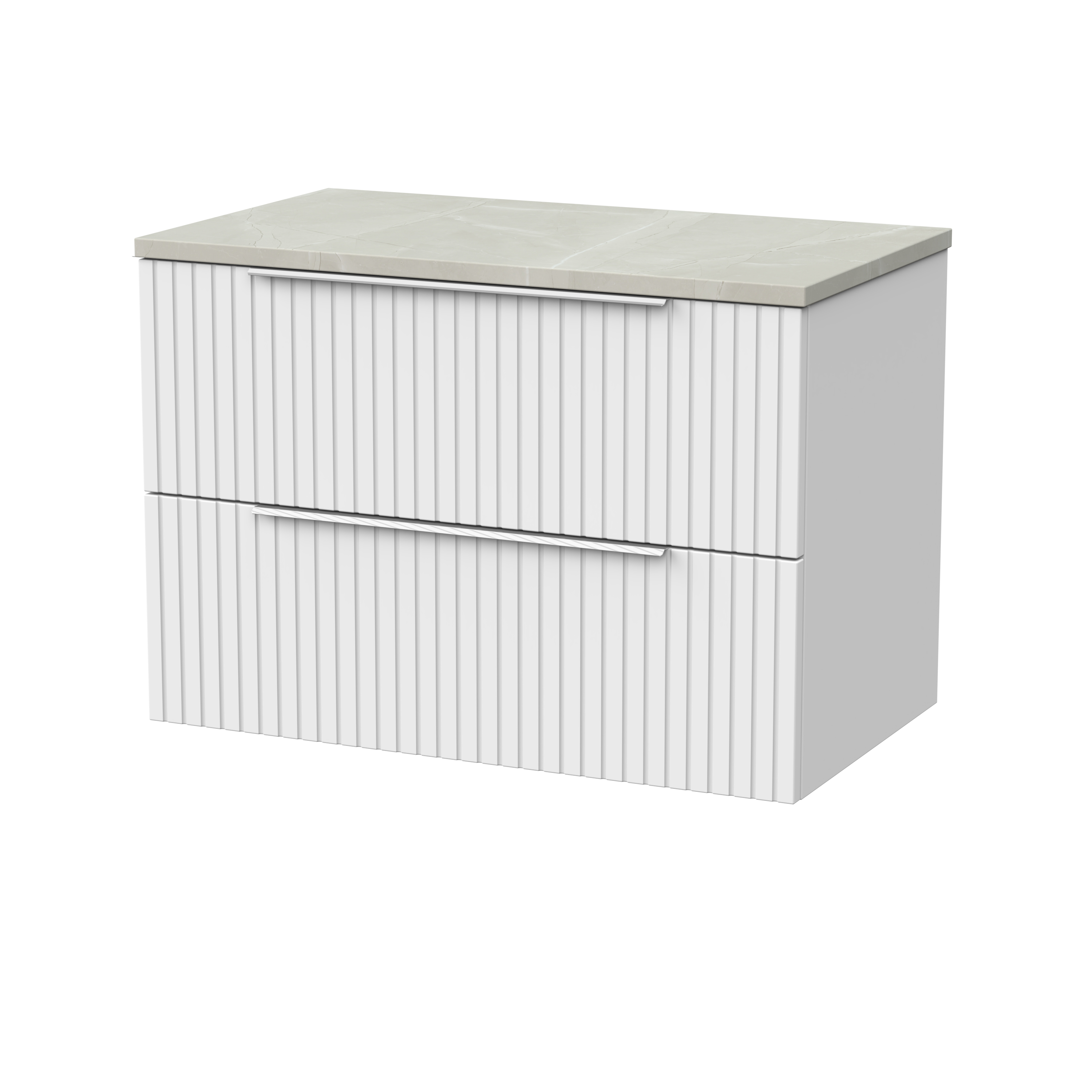 nuie Lux Flume 800mm 2- Drawer Wall Hung Unit with Laminate Worktop - Matt White