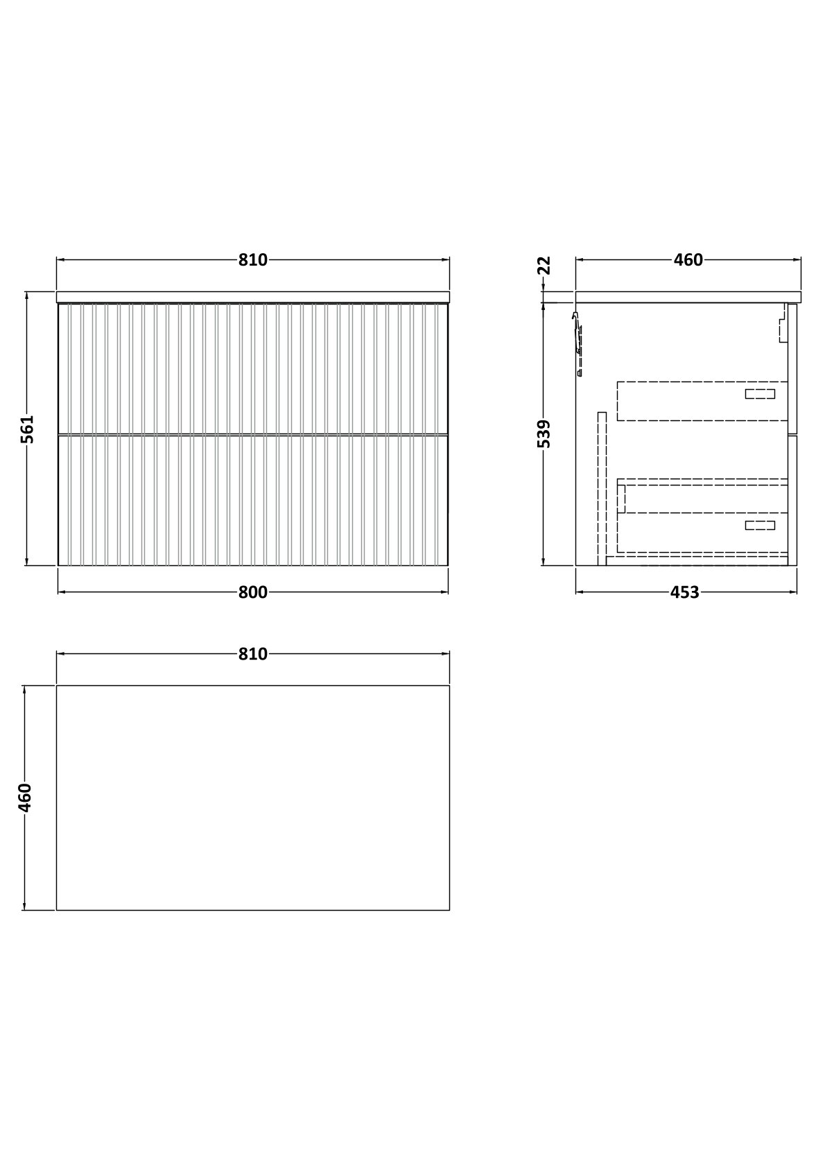 Flume 800mm 2- Drawer Wall Hung Unit with Laminate Worktop