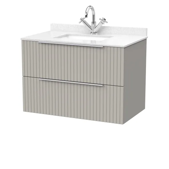 nuie Lux Flume 800mm 2- Drawer Wall Hung Unit with Single Bowl Marble Top 1 Tap Hole in White - Pebble Grey
