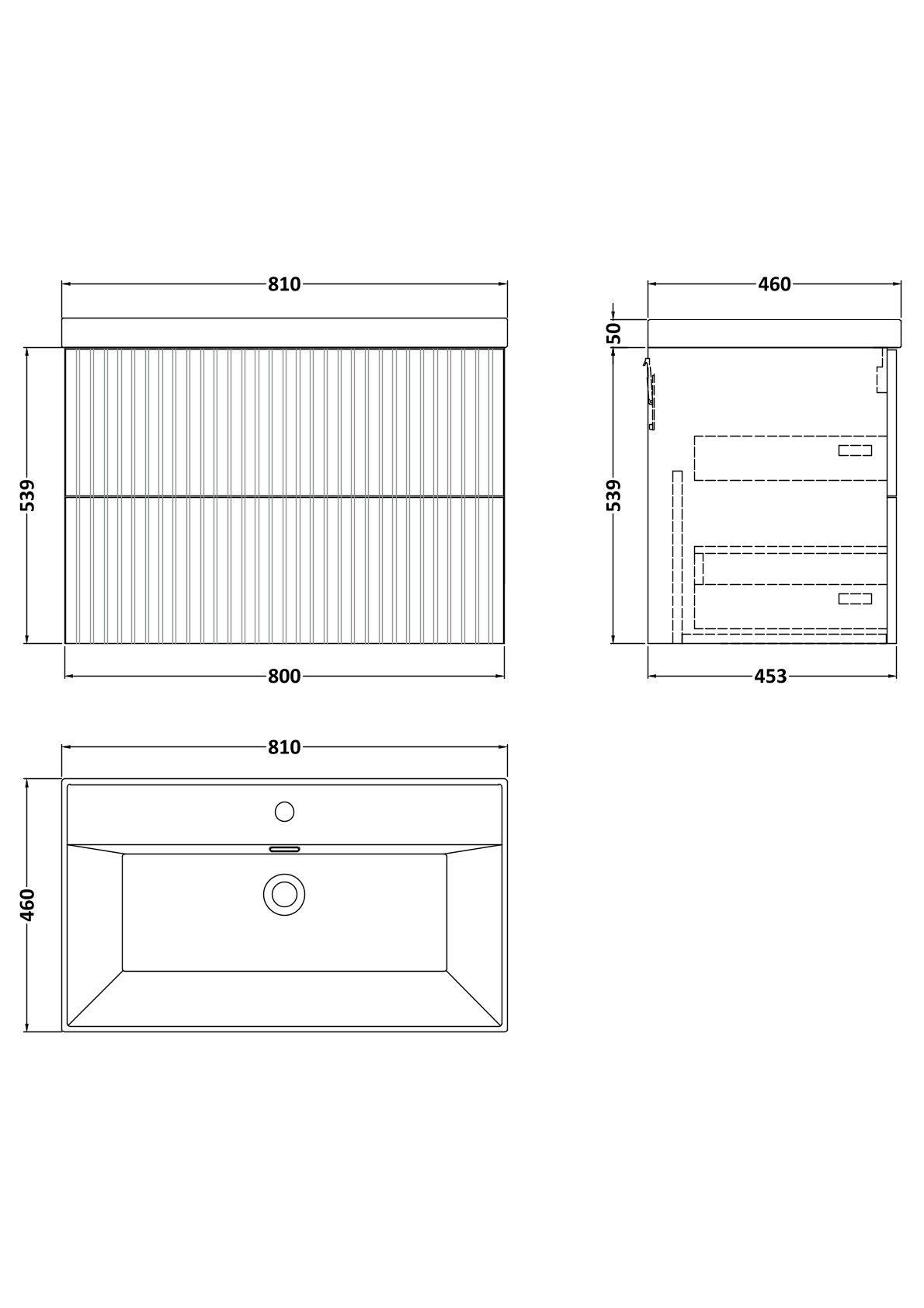 Flume 800mm 2- Drawer Wall Hung Unit with Thin-Edge Basin - 1 Tap Hole