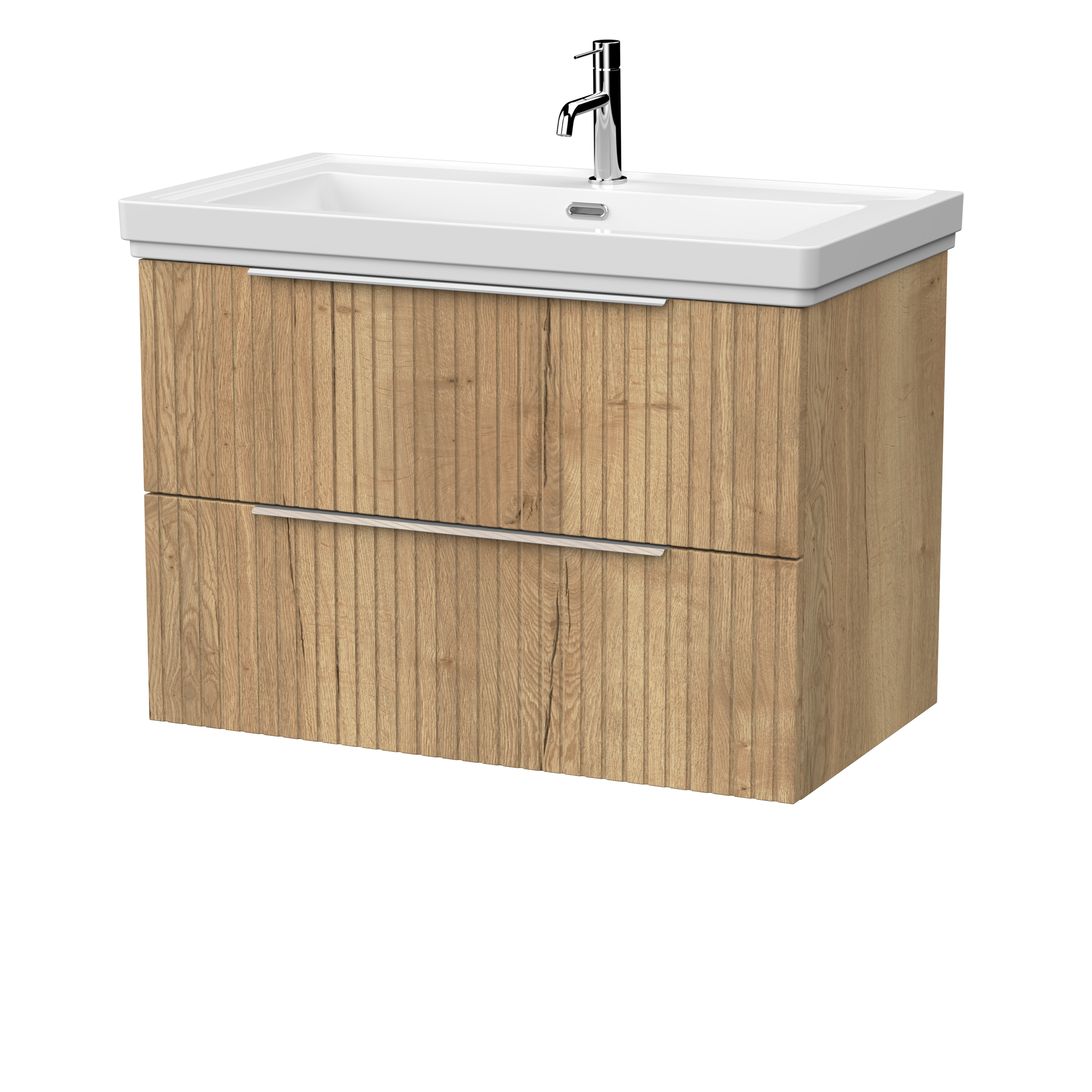 nuie Lux Flume 800mm 2- Drawer Wall Hung Unit with Traditional Fireclay Basin - 1 Tap Hole - Autumn Oak
