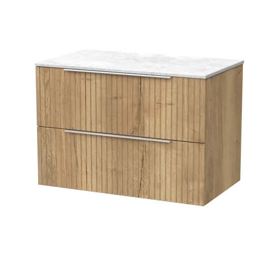 nuie Lux Flume 800mm 2- Drawer Wall Hung Unit with White Marble Top - Autumn Oak