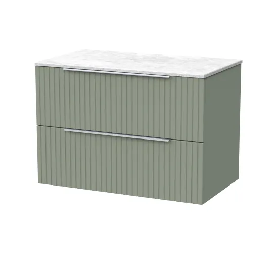 nuie Lux Flume 800mm 2- Drawer Wall Hung Unit with White Marble Top - Fern Green