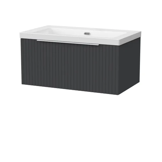 Flume 800mm Single Drawer Wall Hung Unit with Contemporary Fireclay Basin - 0 Tap Holes