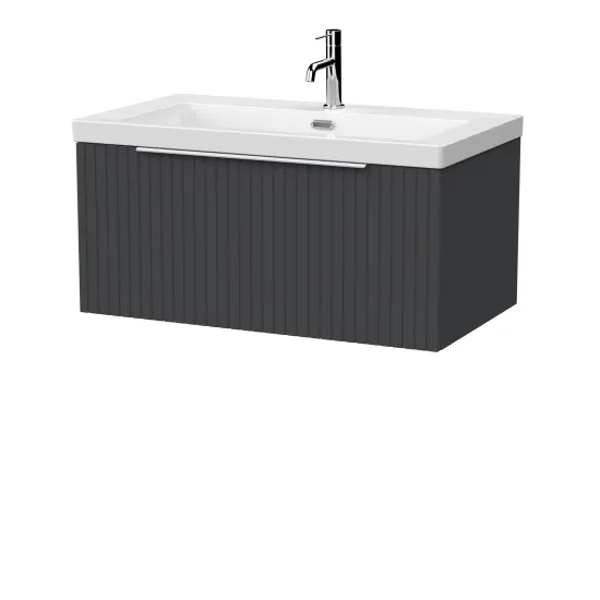 Flume 800mm Single Drawer Wall Hung Unit with Contemporary Fireclay Basin - 1 Tap Hole