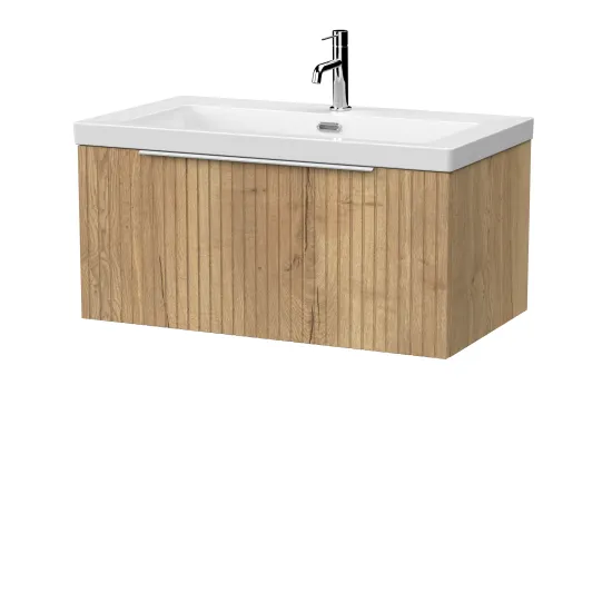 nuie Lux Flume 800mm Single Drawer Wall Hung Unit with Contemporary Fireclay Basin - 1 Tap Hole - Autumn Oak