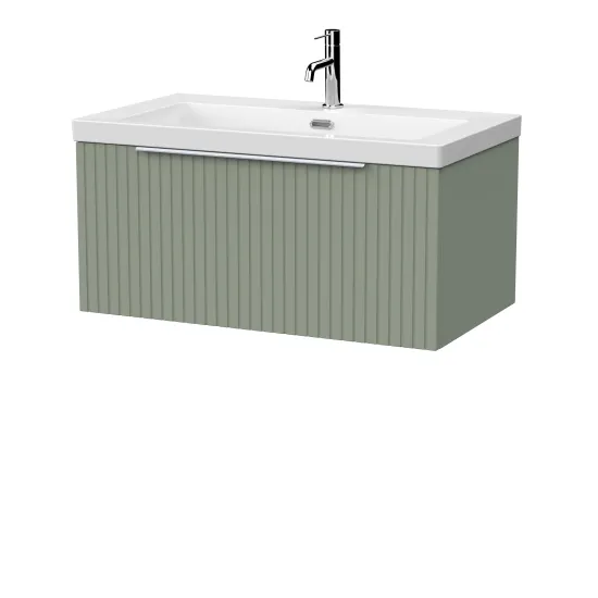 nuie Lux Flume 800mm Single Drawer Wall Hung Unit with Contemporary Fireclay Basin - 1 Tap Hole - Fern Green