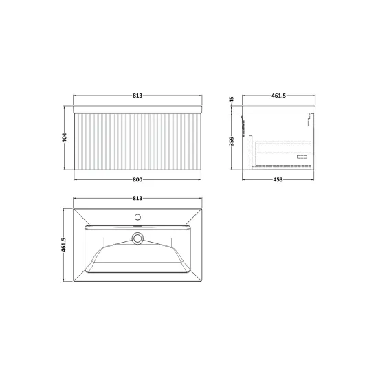 Flume 800mm Single Drawer Wall Hung Unit with Contemporary Fireclay Basin - 1 Tap Hole