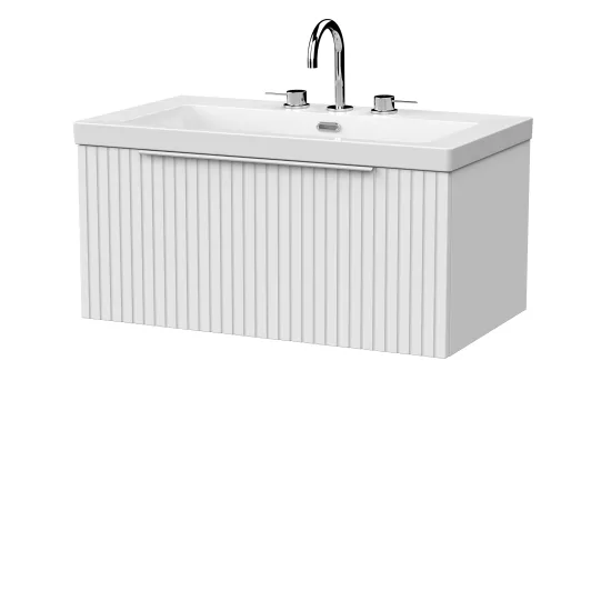 nuie Lux Flume 800mm Single Drawer Wall Hung Unit with Contemporary Fireclay Basin - 3 Tap Holes - Matt White