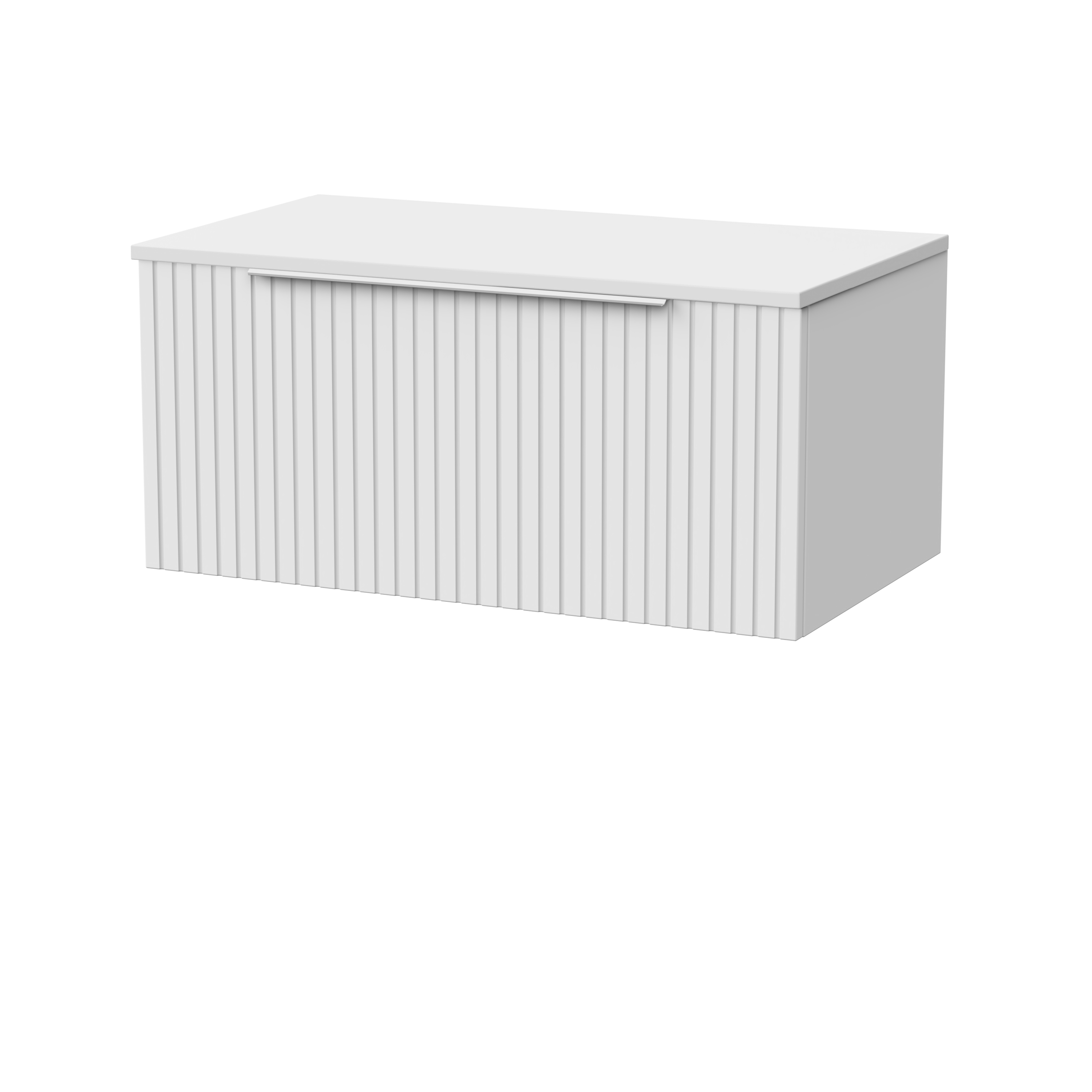 nuie Lux Flume 800mm Single Drawer Wall Hung Unit with Furniture Worktop - Matt White