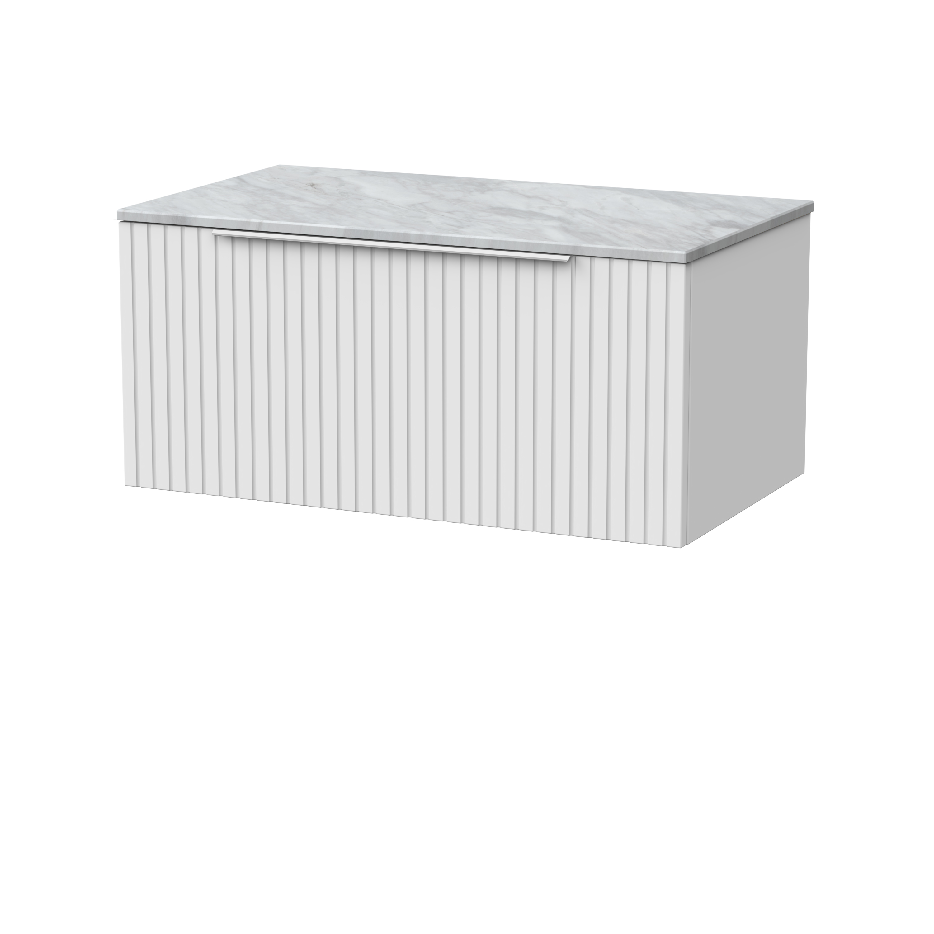 nuie Lux Flume 800mm Single Drawer Wall Hung Unit with Grey Marble Top - Matt White