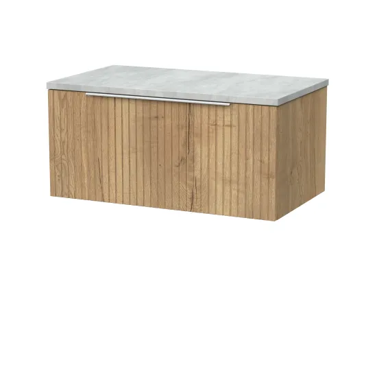 nuie Lux Flume 800mm Single Drawer Wall Hung Unit with Laminate Worktop - Autumn Oak