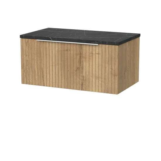 nuie Lux Flume 800mm Single Drawer Wall Hung Unit with Laminate Worktop - Autumn Oak