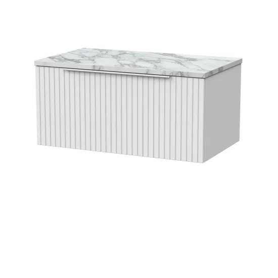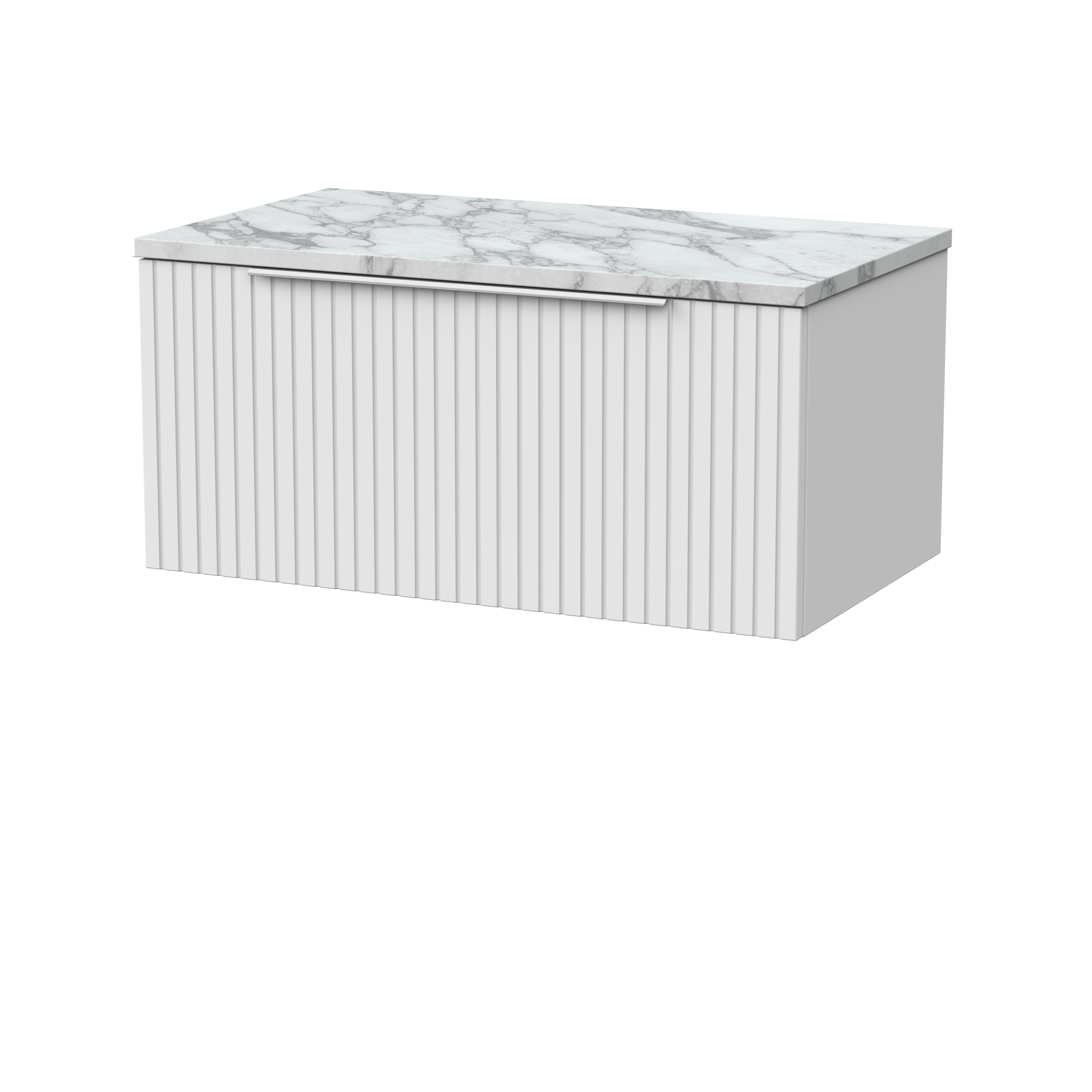 nuie Lux Flume 800mm Single Drawer Wall Hung Unit with Laminate Worktop - Matt White