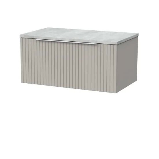 nuie Lux Flume 800mm Single Drawer Wall Hung Unit with Laminate Worktop - Pebble Grey