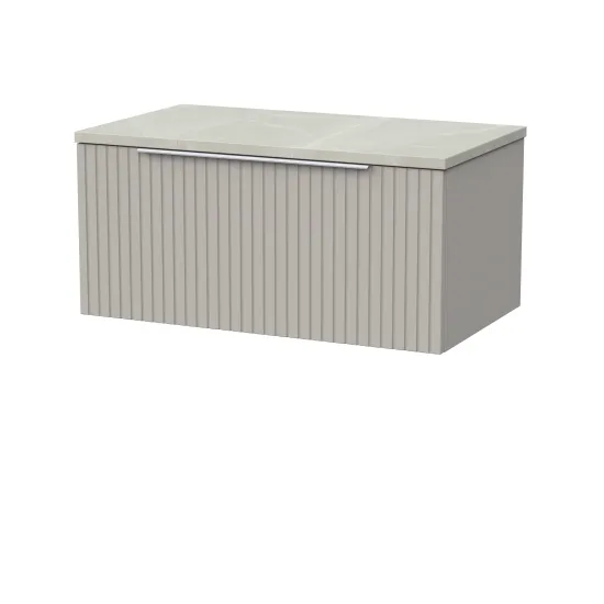 nuie Lux Flume 800mm Single Drawer Wall Hung Unit with Laminate Worktop - Pebble Grey