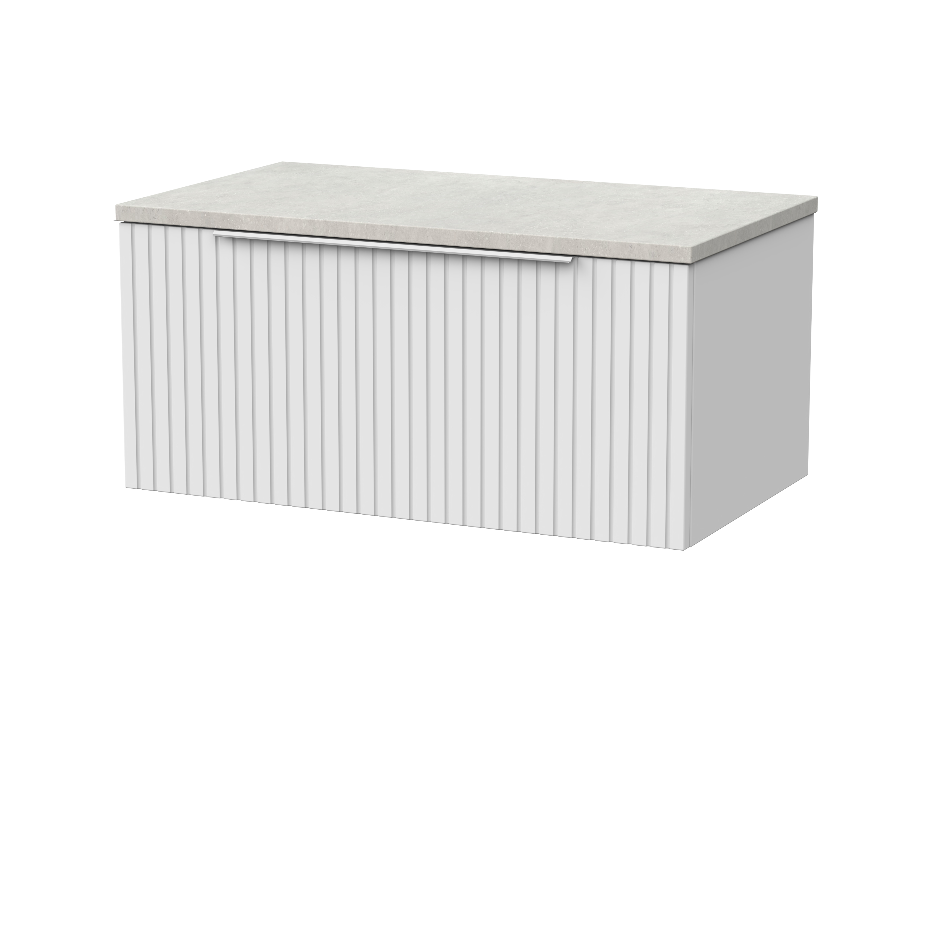 nuie Lux Flume 800mm Single Drawer Wall Hung Unit with Laminate Worktop - Matt White