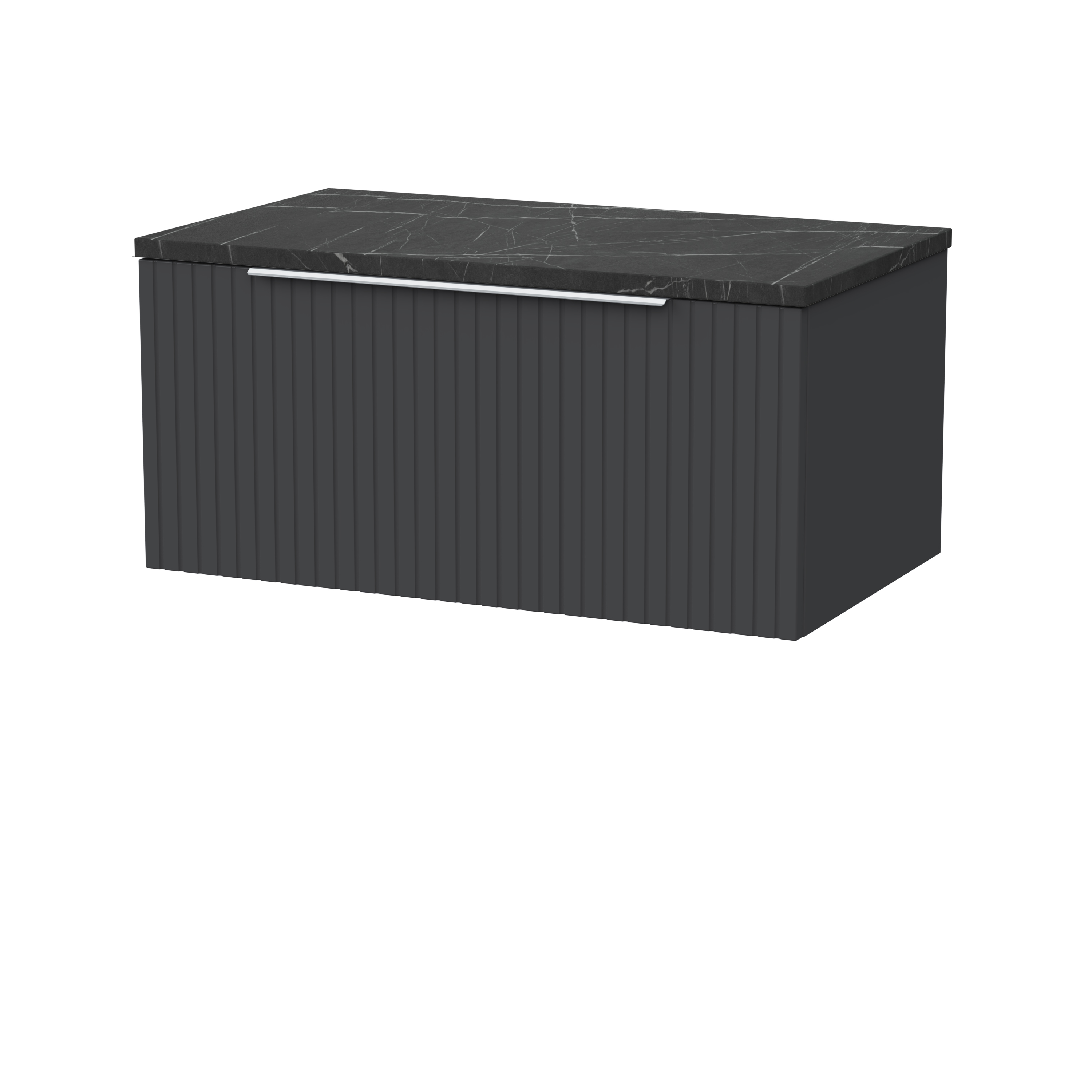 nuie Lux Flume 800mm Single Drawer Wall Hung Unit with Laminate Worktop - Soft Black
