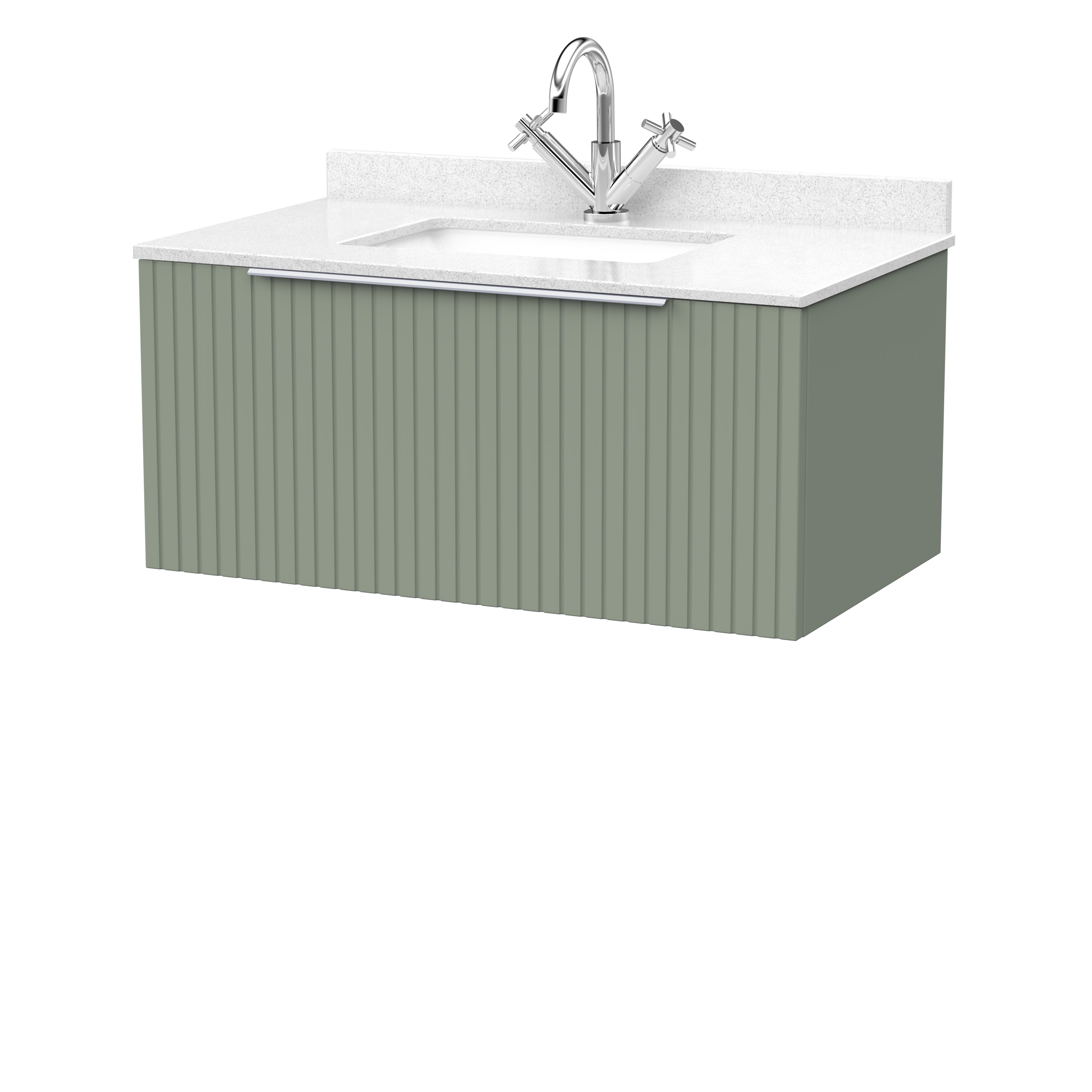 nuie Lux Flume 800mm Single Drawer Wall Hung Unit with Single Bowl Marble Top 1 Tap Hole in White - Fern Green