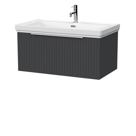 nuie Lux Flume 800mm Single Drawer Wall Hung Unit with Traditional Fireclay Basin - 1 Tap Hole - Soft Black