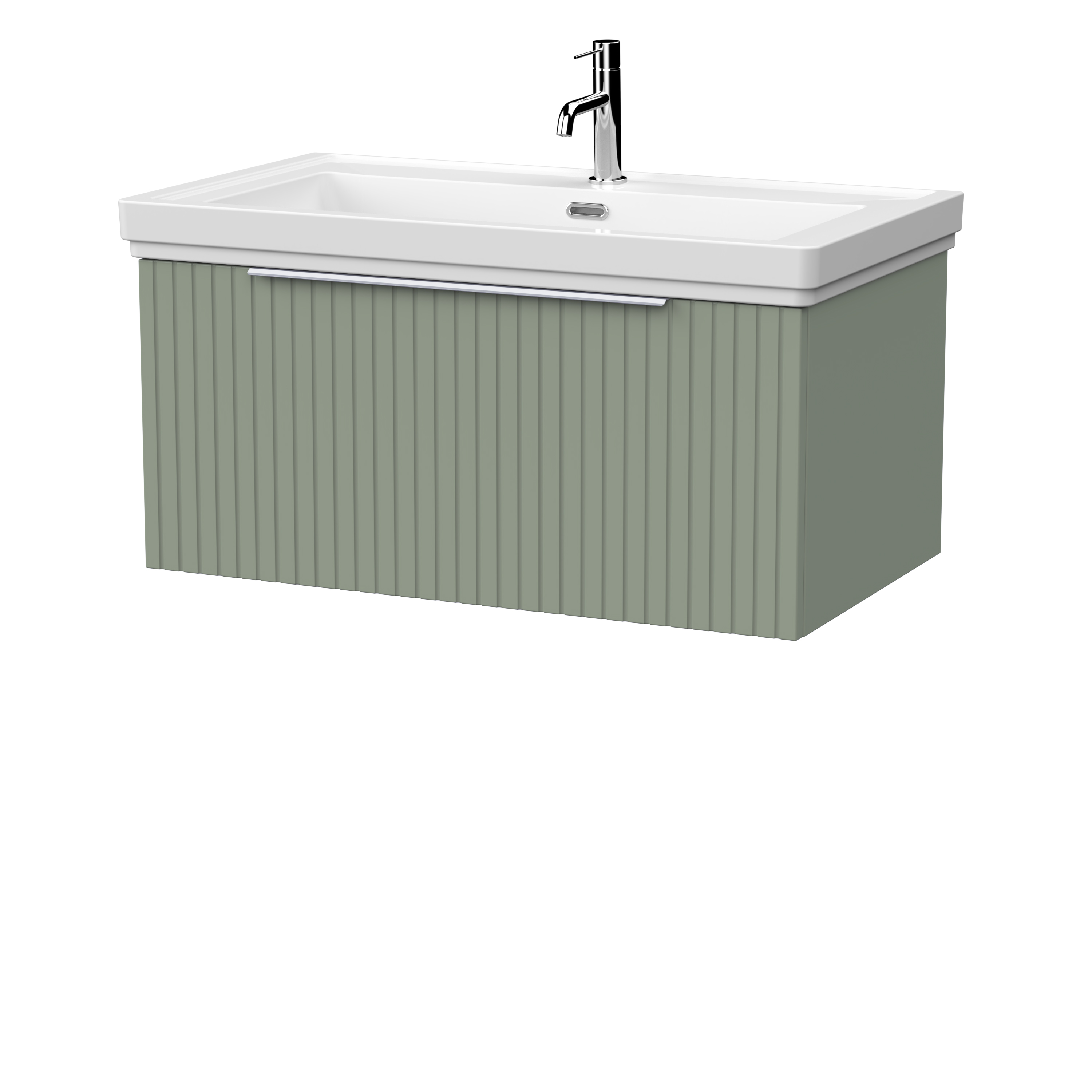 nuie Lux Flume 800mm Single Drawer Wall Hung Unit with Traditional Fireclay Basin - 1 Tap Hole - Fern Green