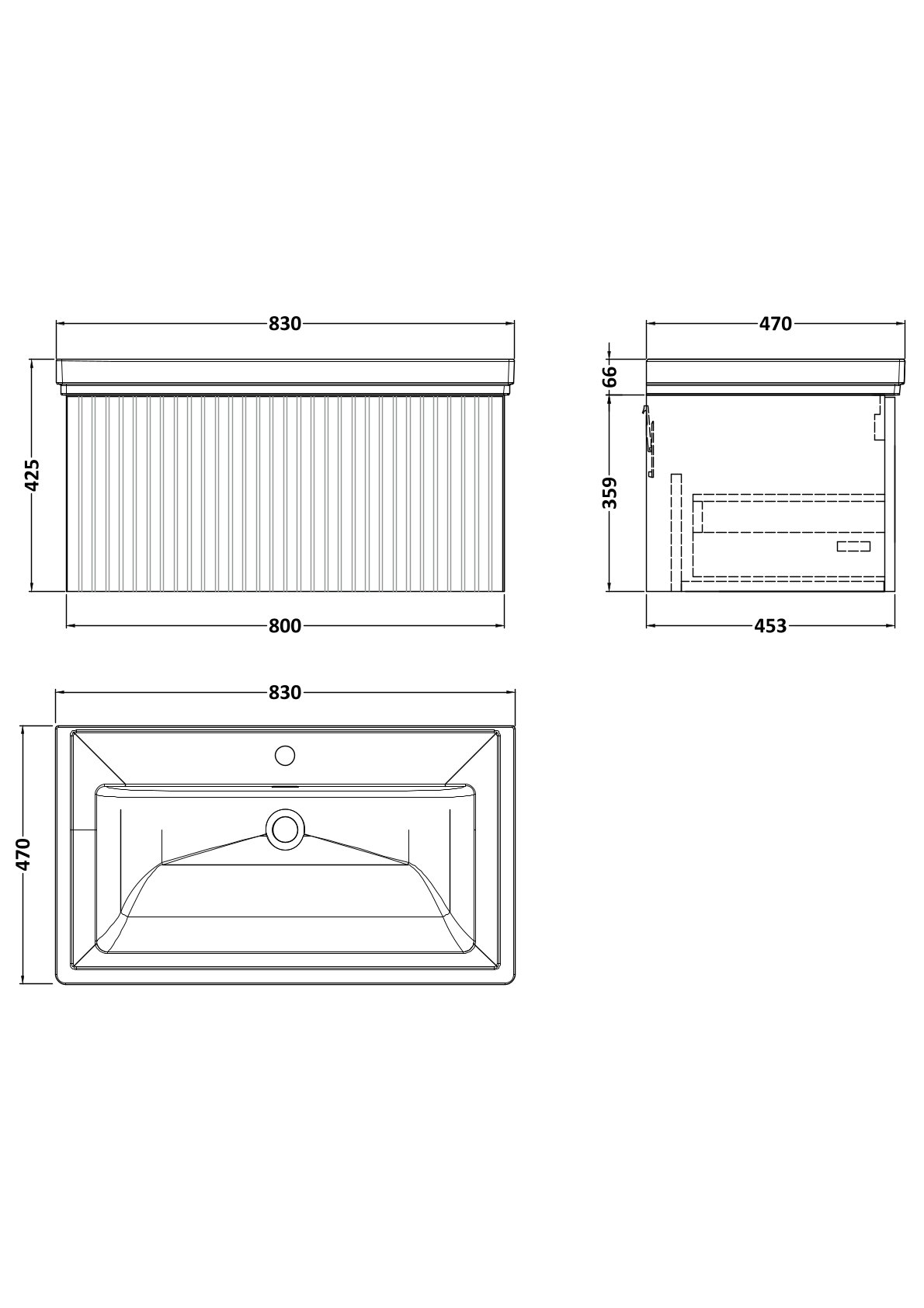 Flume 800mm Single Drawer Wall Hung Unit with Traditional Fireclay Basin - 1 Tap Hole