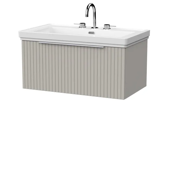 nuie Lux Flume 800mm Single Drawer Wall Hung Unit with Traditional Fireclay Basin - 3 Tap Holes - Pebble Grey