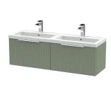 Hudson Reed Fluted 1205mm Satin Green Wall Hung 2-Drawer Vanity Unit With Double Polymarble Basin
