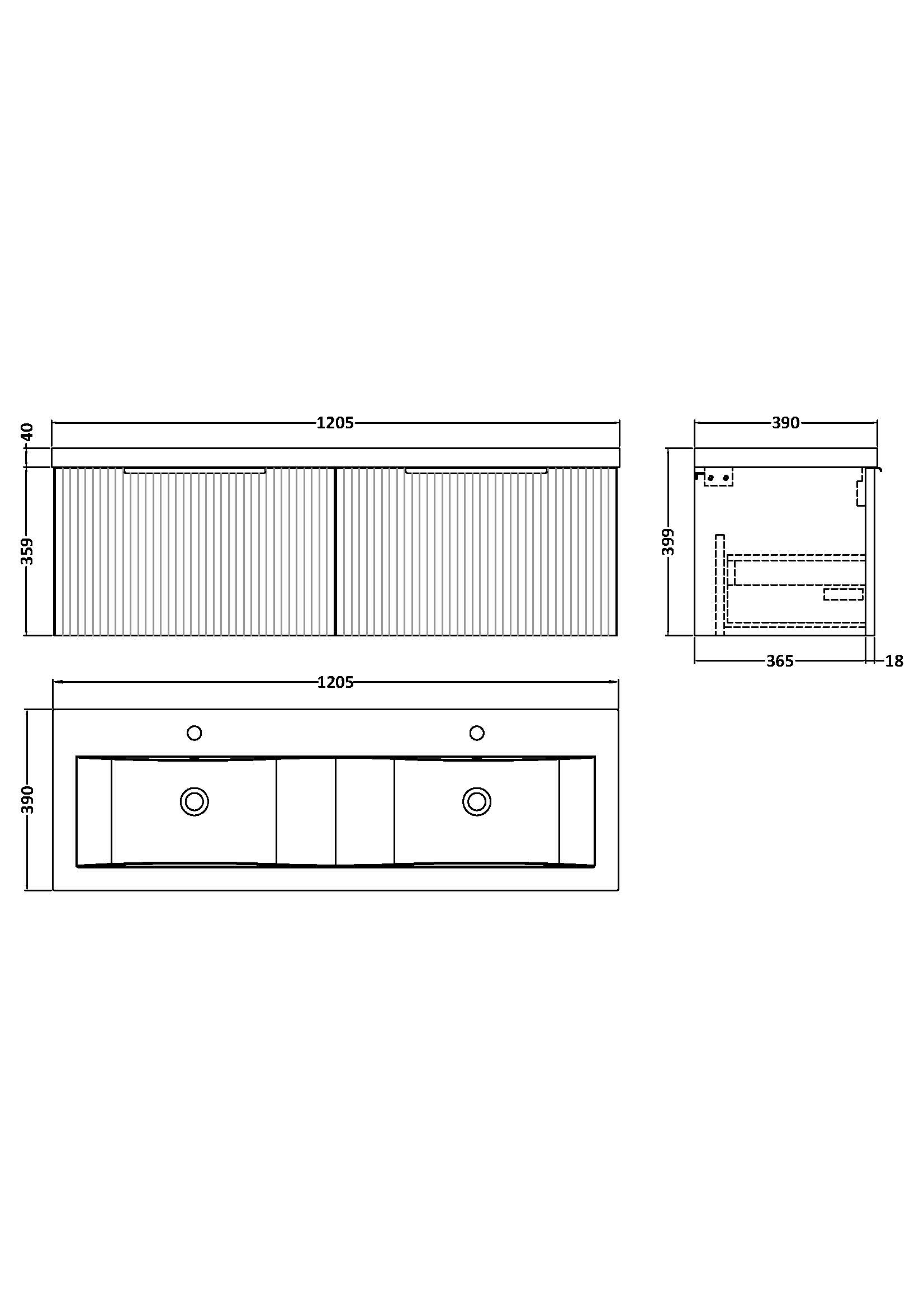 Hudson Reed Fluted 1200mm Wall Hung 2-Drawer Vanity Unit & Double Basin