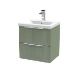 Hudson Reed Fluted 500mm Satin Green 2-Drawer Wall Hung Vanity Unit With Basin