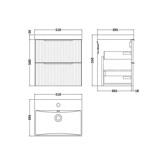 Hudson Reed Fluted 500mm Wall Hung 2-Drawer Vanity and Thin-Edge Basin - Satin Grey