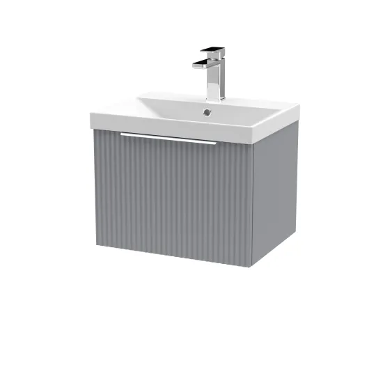 Hudson Reed Fluted 500mm Wall Hung Single Drawer Vanity and Thin-Edge Basin - Satin Grey