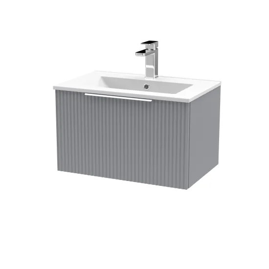 Hudson Reed Fluted 600mm Wall Hung Single Drawer Vanity and Minimalist Basin - Satin Grey