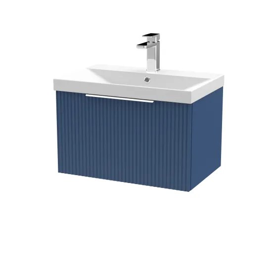 Hudson Reed Fluted 600mm Wall Hung Single Drawer Vanity and Thin-Edge Basin - Satin Blue